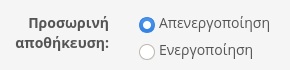 Σε περίπτωση online εξετάσεων, γενικά η λειτουργία της προσωρινής αποθήκευσης δεν εξυπηρετεί στα περισσότερα σενάρια, και προτείνεται η απενεργοποίηση της σχετικής επιλογής στις ρυθμίσεις της άσκησης: