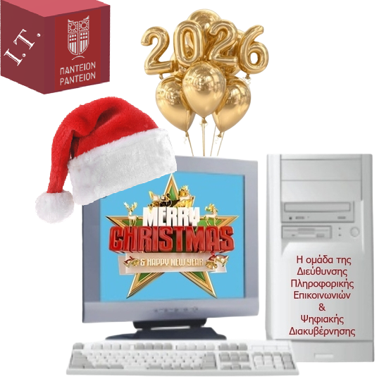 Σας ενημερώνουμε ότι κατά την εορταστική περίοδο το helpdesk της Διεύθυνσης Πληροφορικής, Επικοινωνιών & Ψηφιακής Διακυβέρνησης θα εξυπηρετεί μόνο επείγοντα περιστατικά. Για οποιοδήποτε θέμα, μπορείτε να αποστέλλετε μήνυμα στα e-mail των Υπηρεσιών της Διεύθυνσης και θα καταβάλουμε κάθε δυνατή προσπάθεια για την εξυπηρέτησή σας.