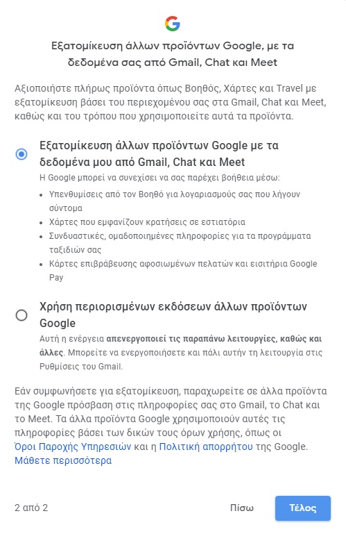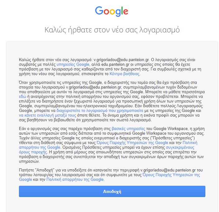 5. Επιλέγετε "Τέλος" και είστε έτοιμοι για τη χρήση των υπηρεσιών της GSuite for Education της Google.